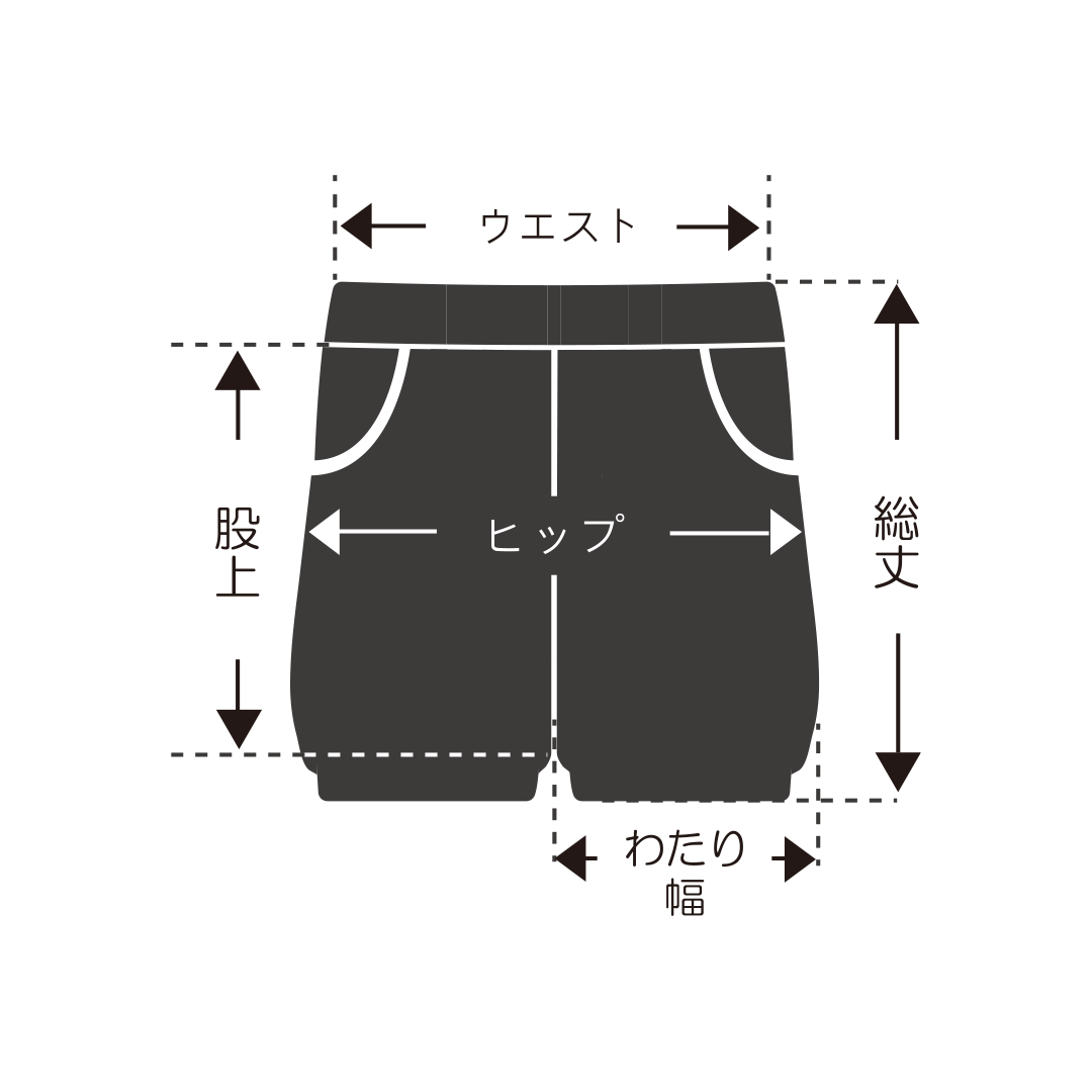 総丈 : サスペンダー無しでウエスト上から裾まで