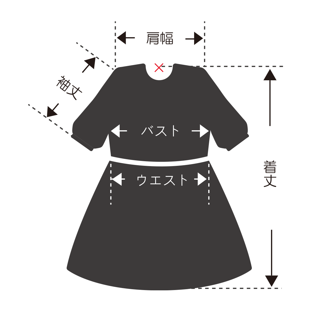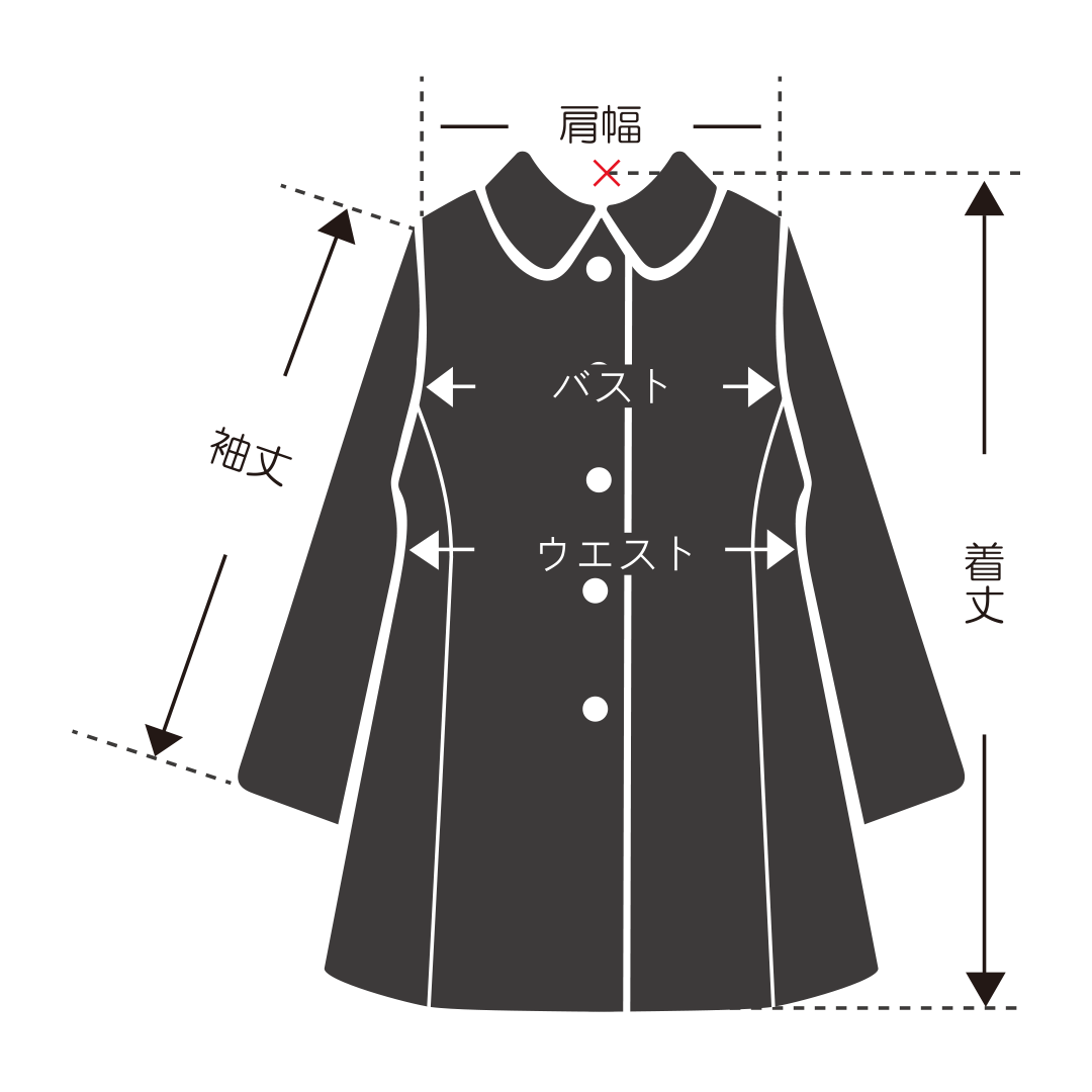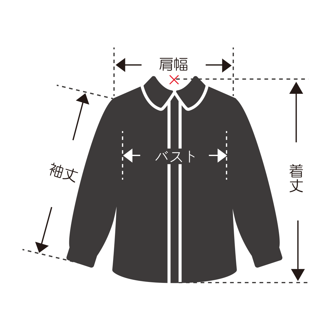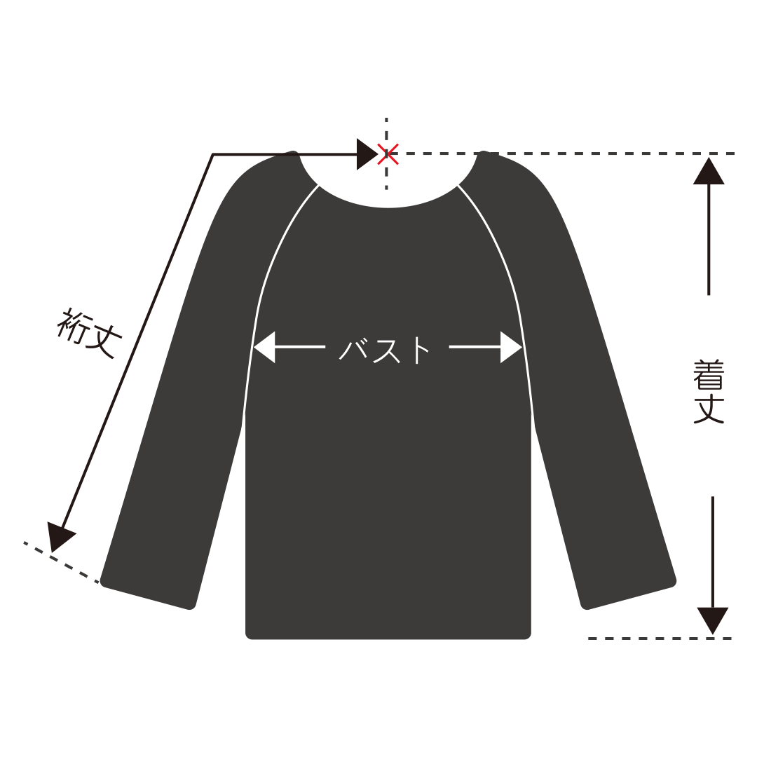 着丈 : (×) バックネックポイント 〜 裾