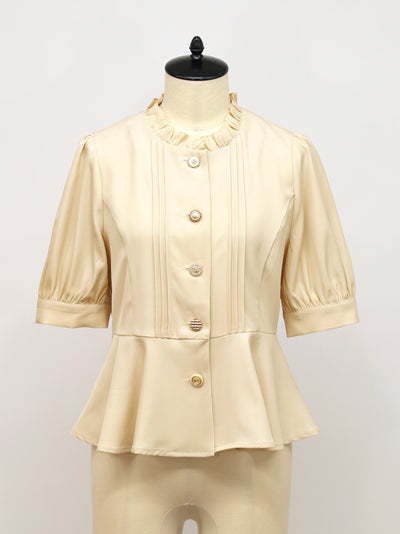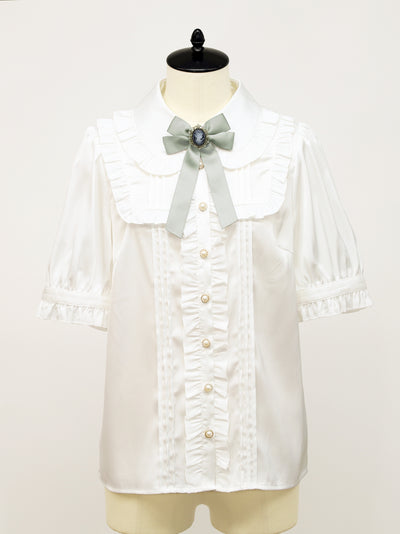 丸衿フリルブラウスのパフスリーブの半袖バージョンです。