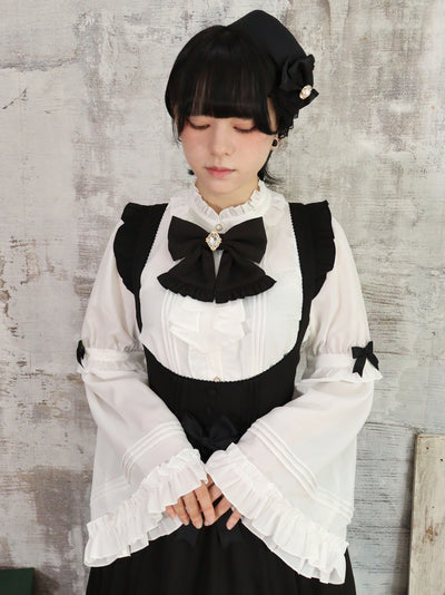 第4ボタンまであるダブルフリルは、ハイウエストスカートと合わせて丁度良い位置にくるようデザインいたしました。